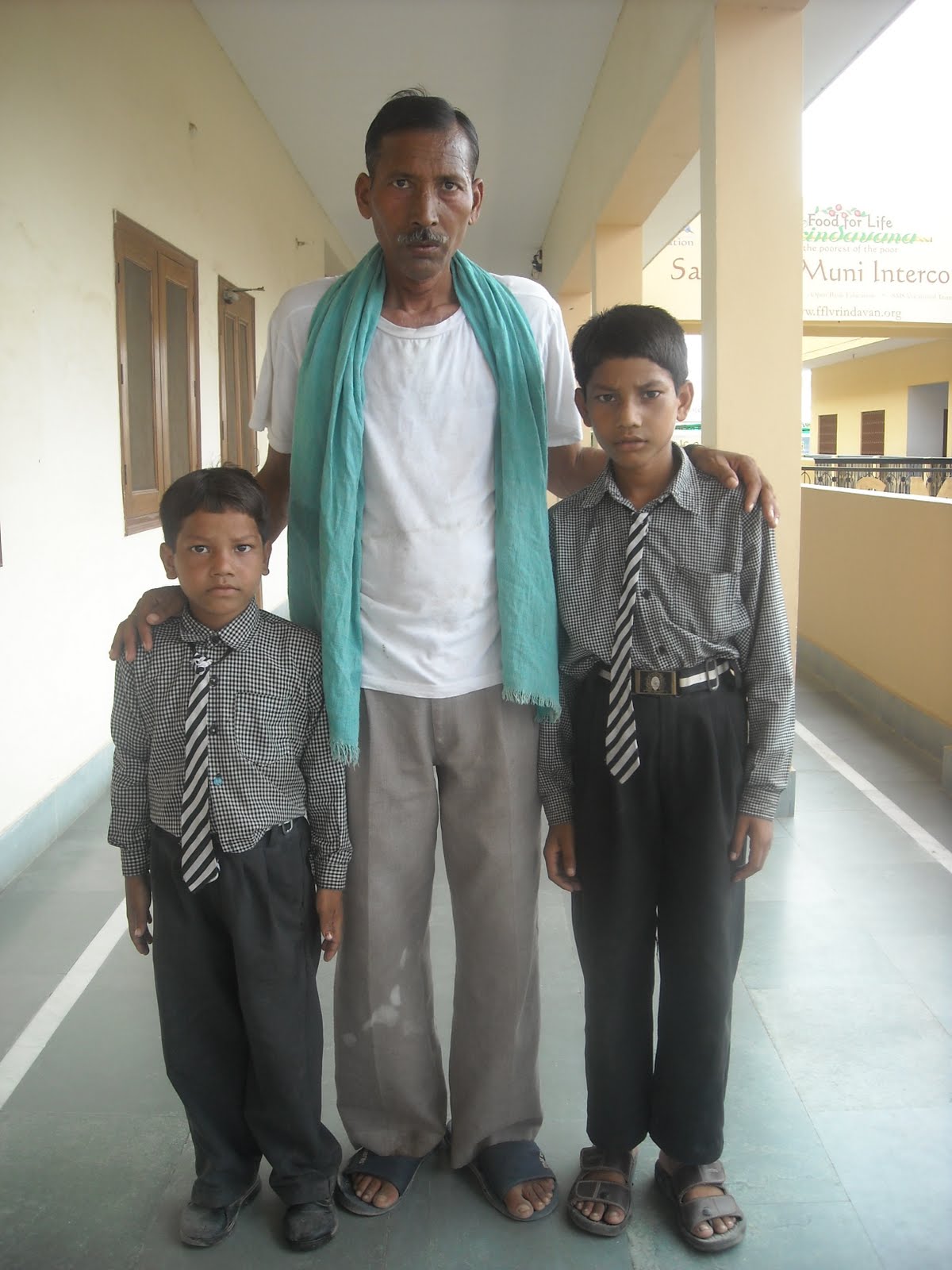 These two little boys are Kapil and Bhanu-Pratap. Till now they've been attending a local Vrindavan school (not SMS), in the second and first grades, respectively. However, they might have to drop out if we don't help them.