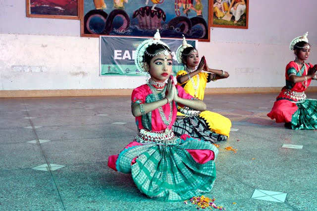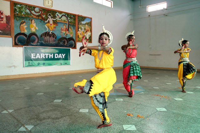 The children preformed, created displays, and produced a small magazine to spread awareness about recycling throughout Vrindavan. They made musical instruments and clothing for a fashion show out of plastic bottles, old tin and cardboard boxes, old sacks, jute bags, bottle caps, dried leaves, plastic bottles, and newspaper, and used them in their performances. Groups of children sang and danced songs about protecting the planet and keeping it clean.